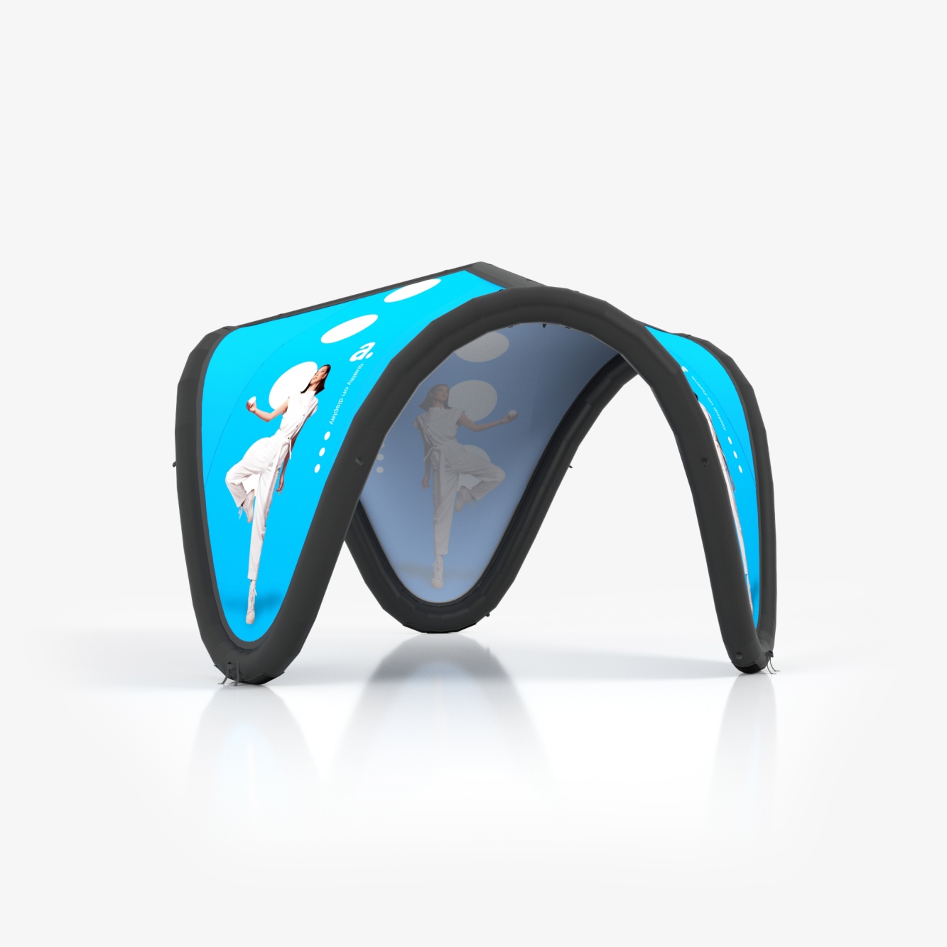 La carpa inflable adTent V es un producto diseñado para llamar la atención. Si estás planificando un evento promocional y quieres que los participantes noten tu stand desde lejos, nuestra carpa inflable cumplirá con esta tarea con éxito. El producto funciona muy bien tanto en interiores, por ejemplo, en ferias comerciales y promociones en galerías, como en exteriores, por ejemplo, durante eventos y festivales.