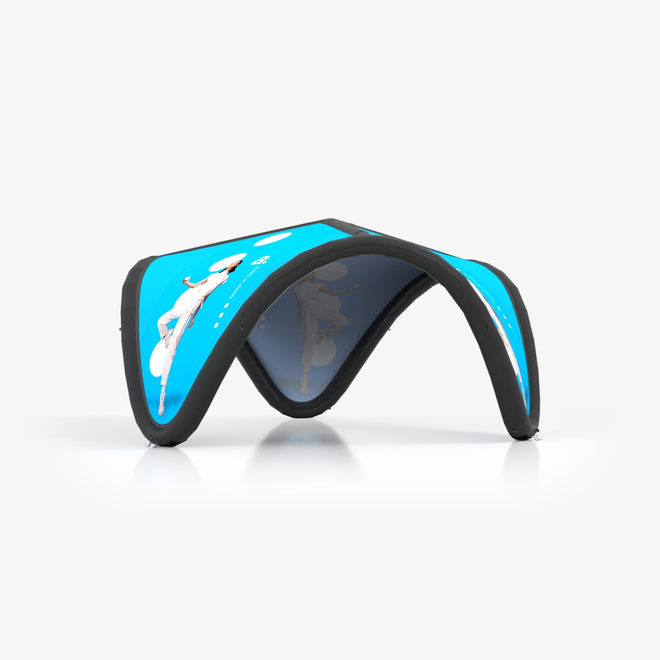 La carpa inflable adTent V es un producto diseñado para llamar la atención. Si estás planificando un evento promocional y quieres que los participantes noten tu stand desde lejos, nuestra carpa inflable cumplirá con esta tarea con éxito. El producto funciona muy bien tanto en interiores, por ejemplo, en ferias comerciales y promociones en galerías, como en exteriores, por ejemplo, durante eventos y festivales.