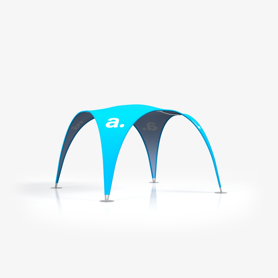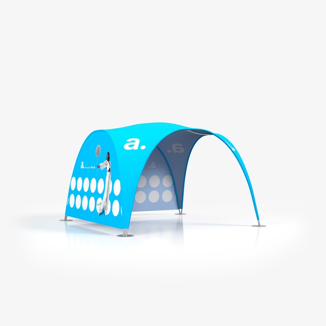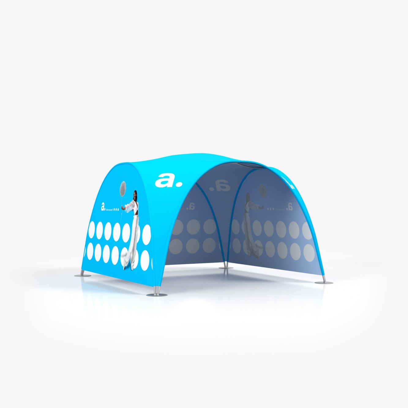 La carpa 3x3 adTent Vario es un producto expositivo con el que podrás organizar un stand cómodo y práctico. Funciona muy bien tanto en eventos al aire libre como en interiores, ya que la tela del techo y las paredes está impregnada y cuenta con certificación de resistencia al fuego. Esta carpa para eventos presentada aquí también será un soporte publicitario efectivo, ya que colocaremos tus gráficos personalizados en las impresiones textiles. La estructura de la carpa se basa en un marco tubular que se conecta mediante cierres a presión.