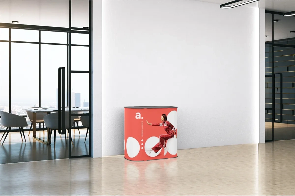 Conferencias: Las gráficas intercambiables permiten adaptar el diseño a diferentes campañas, por lo que este mostrador puede utilizarse en conferencias y otras presentaciones profesionales.