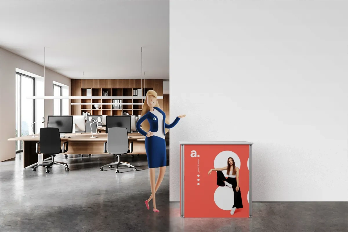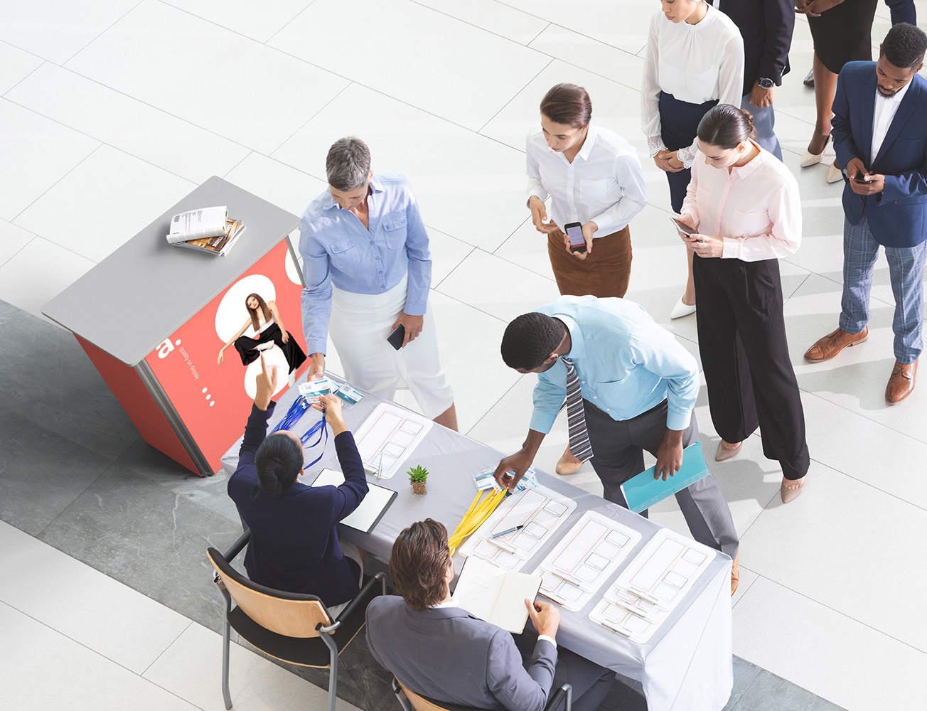Conferencias y reuniones de negocios: ideal como punto de información, registro o lugar de encuentro con clientes.