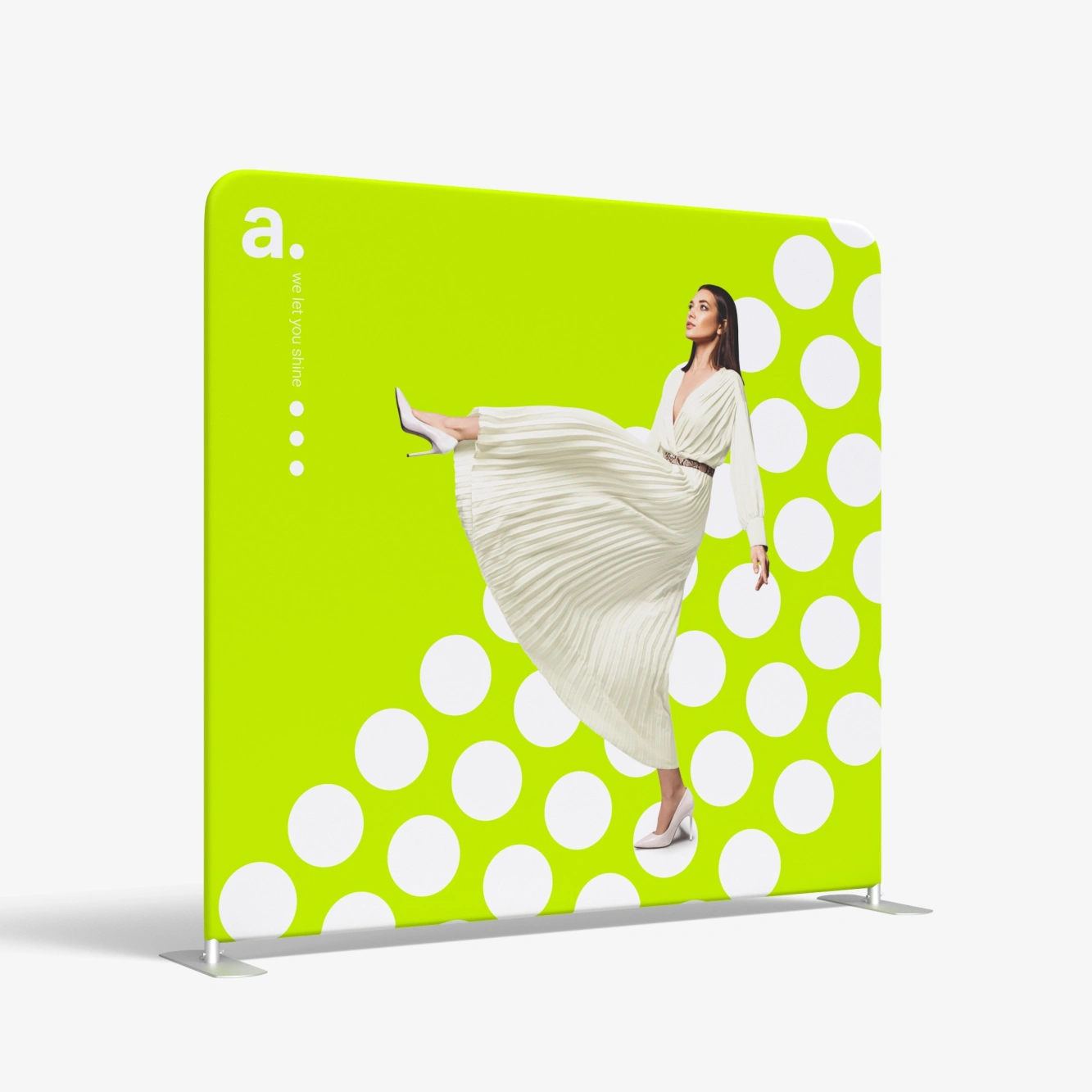 El adWall Vario Straight Premium es una photocall fiesta versátil que encontrará muchos usos durante la promoción de tu marca. Los productos pueden servir como photocalls o elementos de un stand en ferias, pero también se pueden utilizar con éxito en la decoración de oficinas o locales comerciales. Su estructura es ligera y resistente – el diámetro del tubo es de 43 mm.