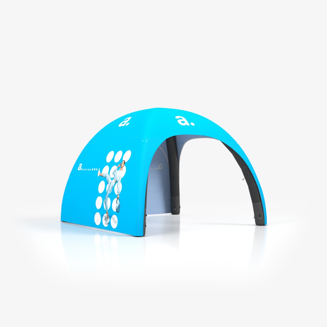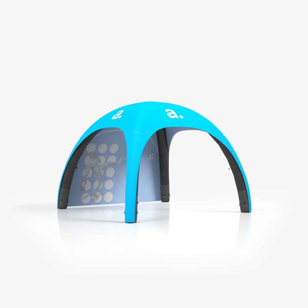 adTent Air Premium es una carpa inflable para eventos que puedes utilizar no solo como protección frente a las condiciones climáticas, sino también como soporte publicitario. El material que cubre la estructura se imprime con los gráficos de tu empresa, de modo que la carpa promocional llamará la atención de tu público y atraerá a las personas a tu stand. Esta carpa inflable se basa en una estructura de presión constante que mantiene un nivel de aire estable gracias a válvulas especiales.