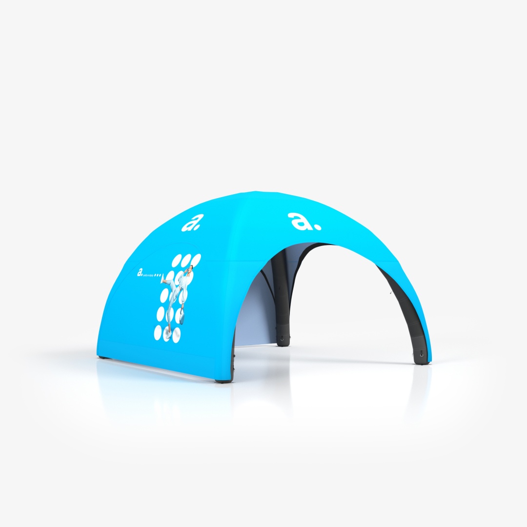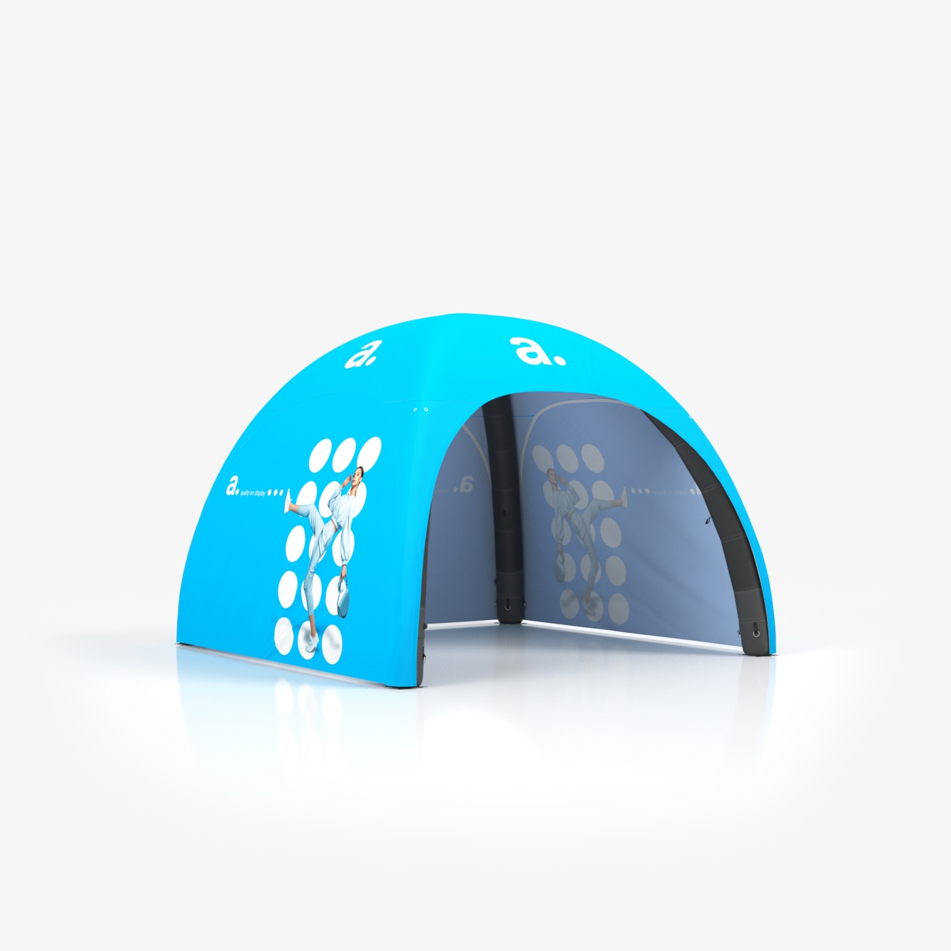 adTent Air Premium es una carpa inflable para eventos que puedes utilizar no solo como protección frente a las condiciones climáticas, sino también como soporte publicitario. El material que cubre la estructura se imprime con los gráficos de tu empresa, de modo que la carpa promocional llamará la atención de tu público y atraerá a las personas a tu stand. Esta carpa inflable se basa en una estructura de presión constante que mantiene un nivel de aire estable gracias a válvulas especiales.